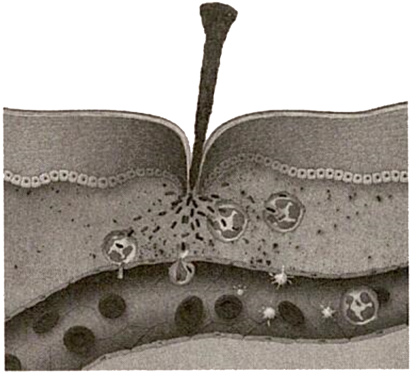 В эксперименте исследователь изучал процесс, изображенный на рисунке, и измерял количество форменных элементов крови у человека. Как в ходе этого процесса изменится количество в крови тромбоцитов и лейкоцитов?