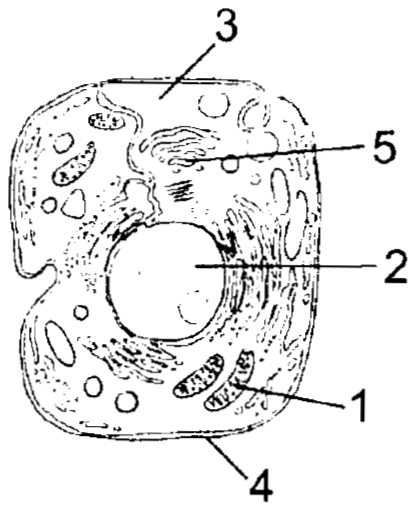 Какой цифрой на рисунке обозначена структура клетки, обладающая свойством полупроницаемости?