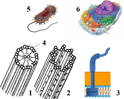 Каким номером на рисунке обозначена клетка, в которой встречается структура под номером 3?
