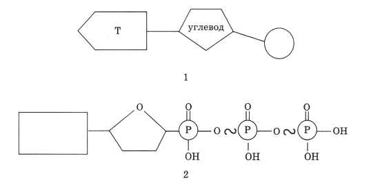 Каким номером обозначен нуклеотид молекулы органического вещества, выполняющего функции хранения и передачи наследственной информации?