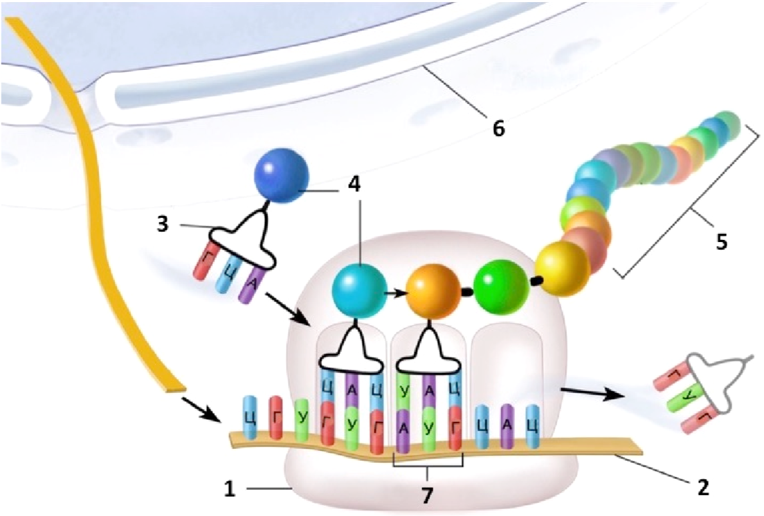 Какой цифрой на рисунке обозначена транспортная РНК?