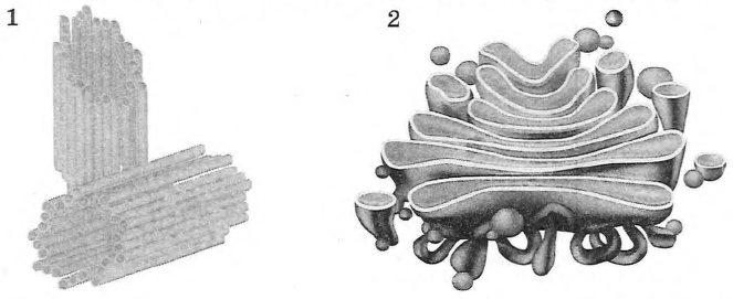 Установите соответствие между органоидами и изображенными ниже характеристиками, обозначенными цифрами 1 и 2: к каждой позиции, данной в первом столбце, подберите соответствующую позицию из второго столбца.