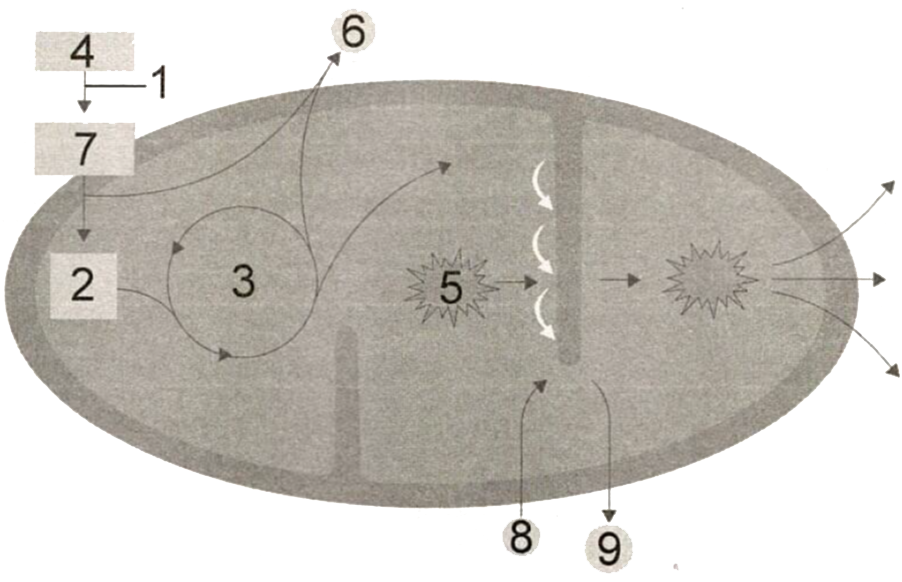 Установите соответствие между процессами и стадиями клеточного дыхания, обозначенными на схеме цифрами 1, 2, 3: к каждой позиции, данной в первом столбце, подберите соответствующую позицию из второго столбца.