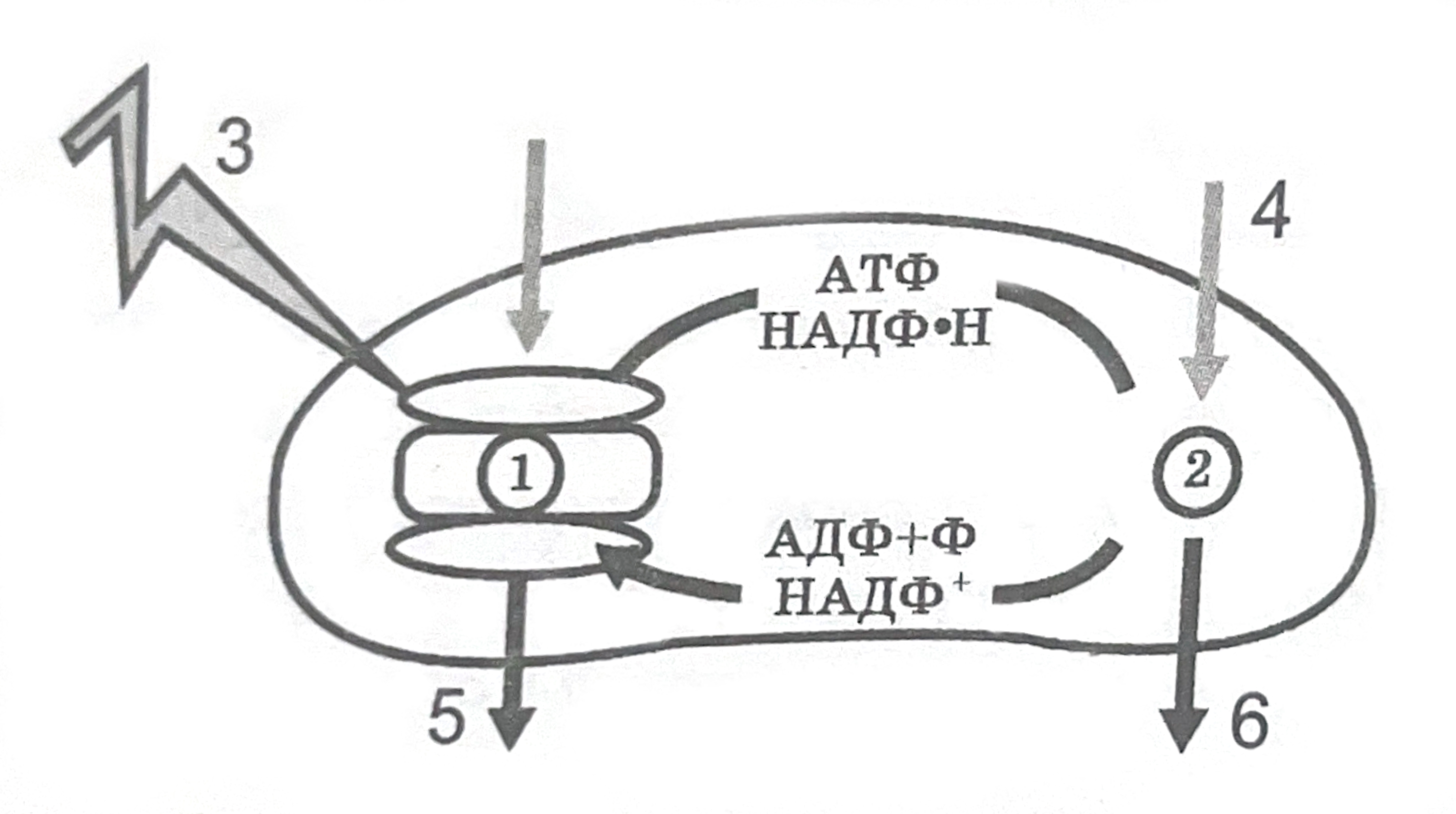 Установите соответствие между признаками и фазами фотосинтеза, обозначенными цифрами на схеме: к каждой позиции, данной в первом столбце, подберите соответствующую позицию из второго столбца.