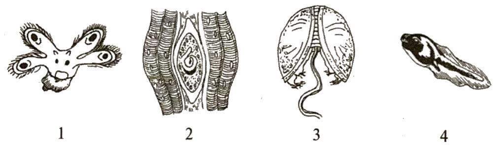 Каким номером на рисунках обозначена личинка паразитического червя?