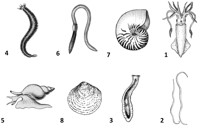 Какой цифрой на рисунке обозначен организм, относящийся к классу, представители которого дышат с помощью жабер или легких?