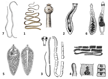 Какой цифрой на рисунке обозначен организм, паразитирующий только в человеке?