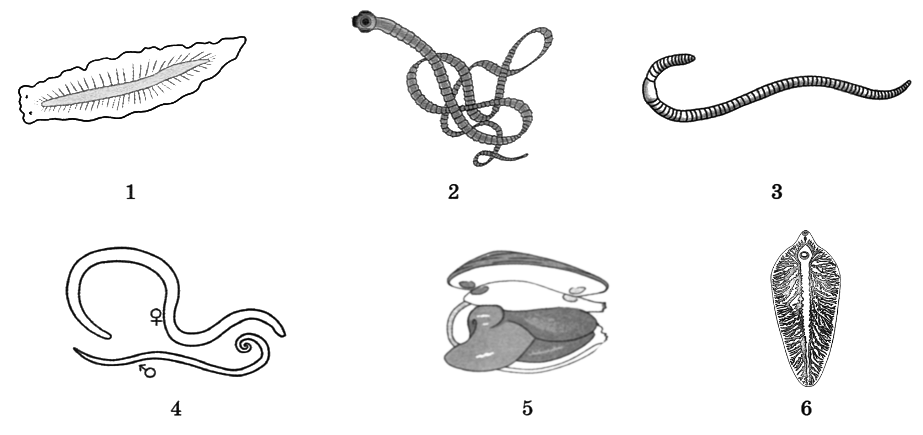 Какой цифрой на рисунке обозначено животное, обитающее в желчных протоках организма человека?