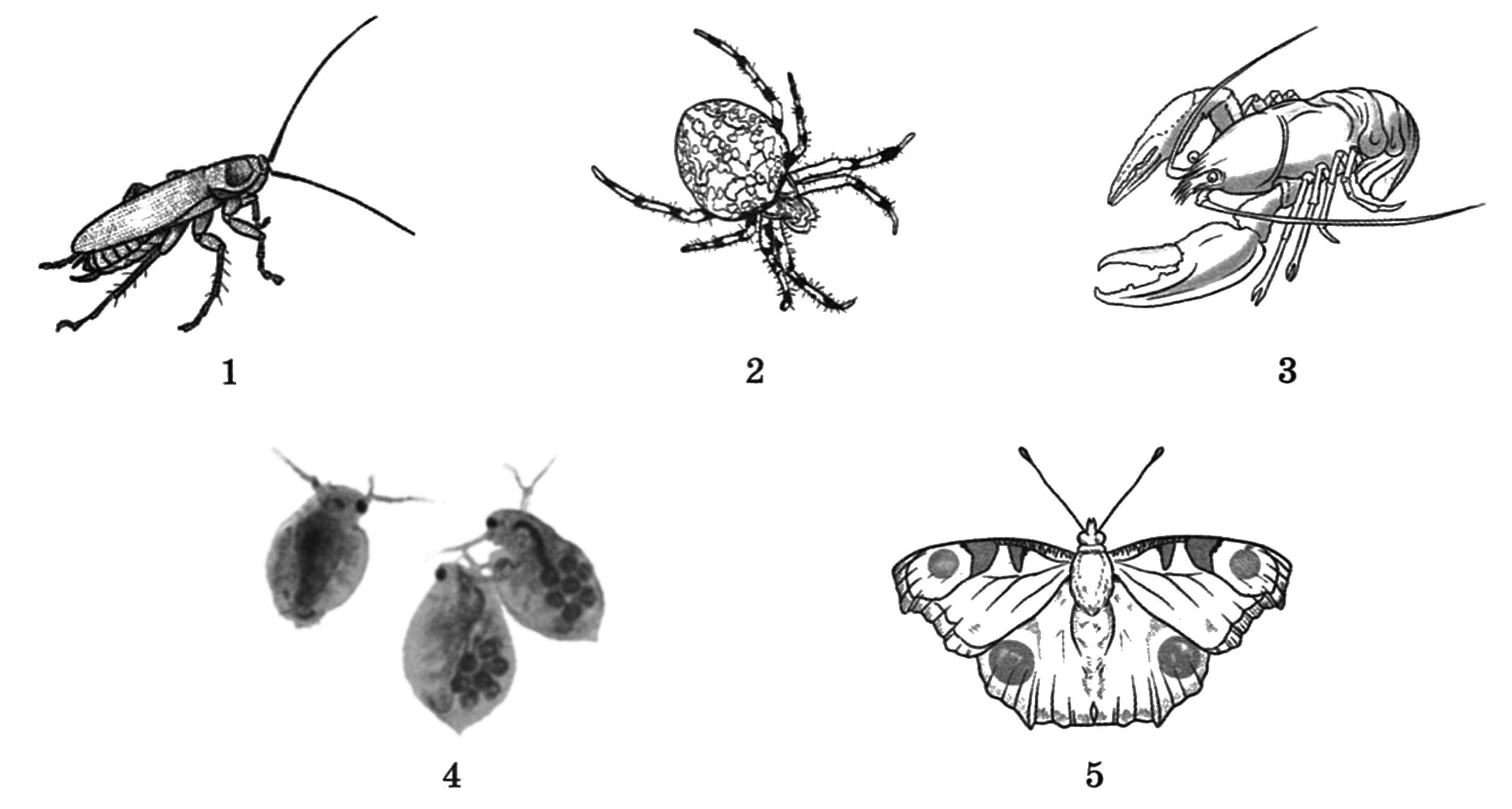 Какой цифрой на рисунке обозначено животное, в цикле развития которого есть стадия куколки?