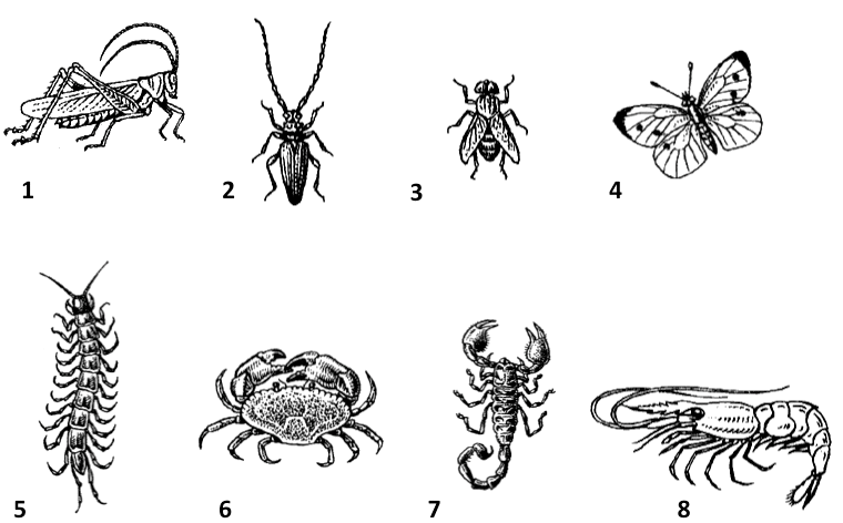Какой цифрой на рисунке обозначено животное, относящееся к классу Паукообразные?