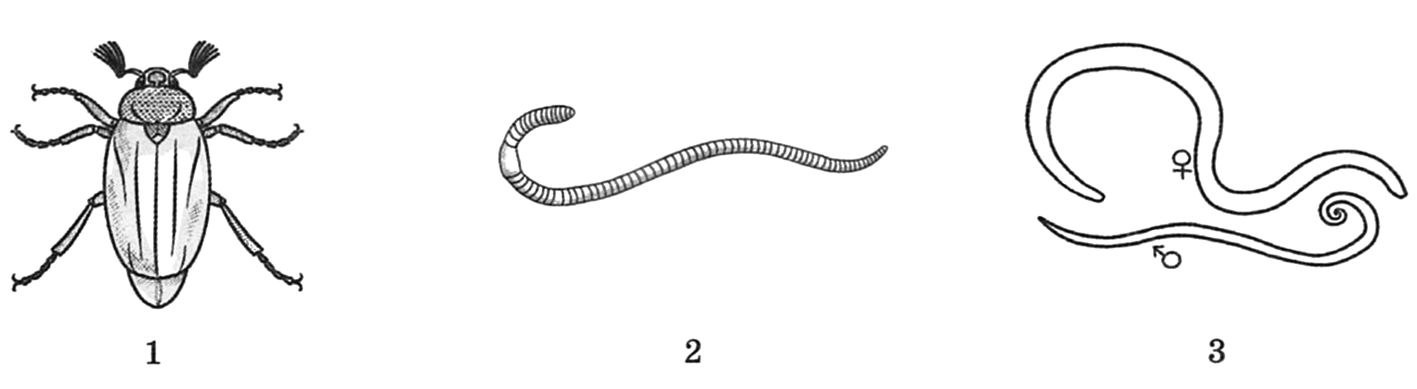 Какой цифрой на рисунке обозначено животное, в цикле развития которого четыре стадии?