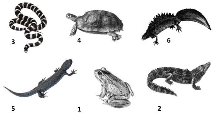 Какой цифрой на рисунке обозначен представитель хвостатых земноводных?