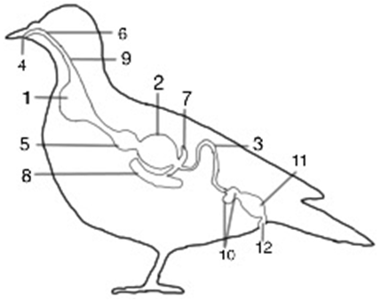 Какой цифрой на рисунке обозначен орган голубя, в котором пища переваривается желудочным соком?