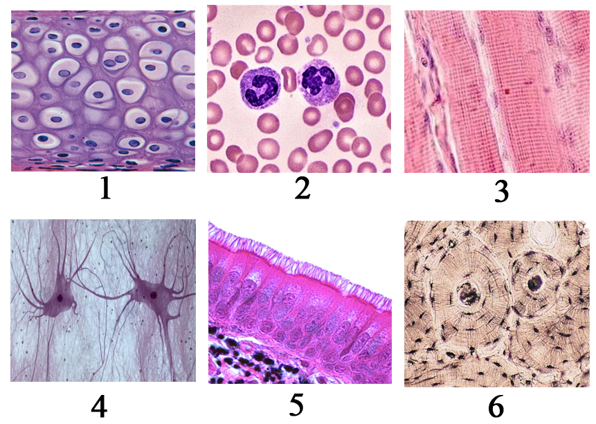 Установите соответствие между характеристиками и типами тканей млекопитающих, изображенными на рисунках 1, 2 и 3: к каждой позиции, данной в первом столбце, подберите соответствующую позицию из второго столбца.