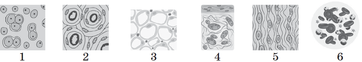Установите соответствие между характеристиками и видами соединительной ткани, обозначенными на рисунке цифрами 1, 2, 3: к каждой позиции из первого столбца подберите соответствующую позицию из второго столбца.
