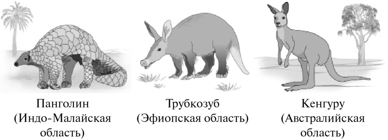 Рассмотрите рисунок с изображением животных, обитающих на разных материках, и определите, какие виды изображены, какую группу доказательств эволюции они иллюстрируют, а также тип изоляции, который привел к формированию таких видов. Заполните пустые ячейки таблицы, используя термины и понятия, приведенные в списке. Для каждой ячейки, обозначенной буквой, выберите соответствующий термин или понятие из предложенного списка.