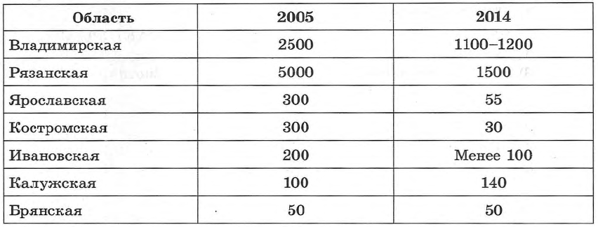 Проанализируйте таблицу «Численность русской выхухоли за 2005 и 2014 годы».