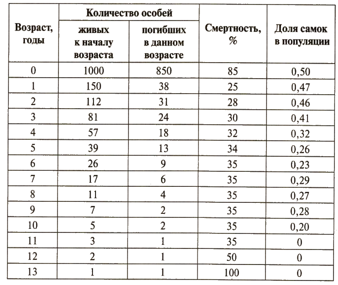 - Количество самцов и самок в возрасте 2-3 лет одинаковое.