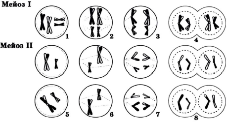 Каким номером обозначена фаза мейоза, во время которой происходит кроссинговер?