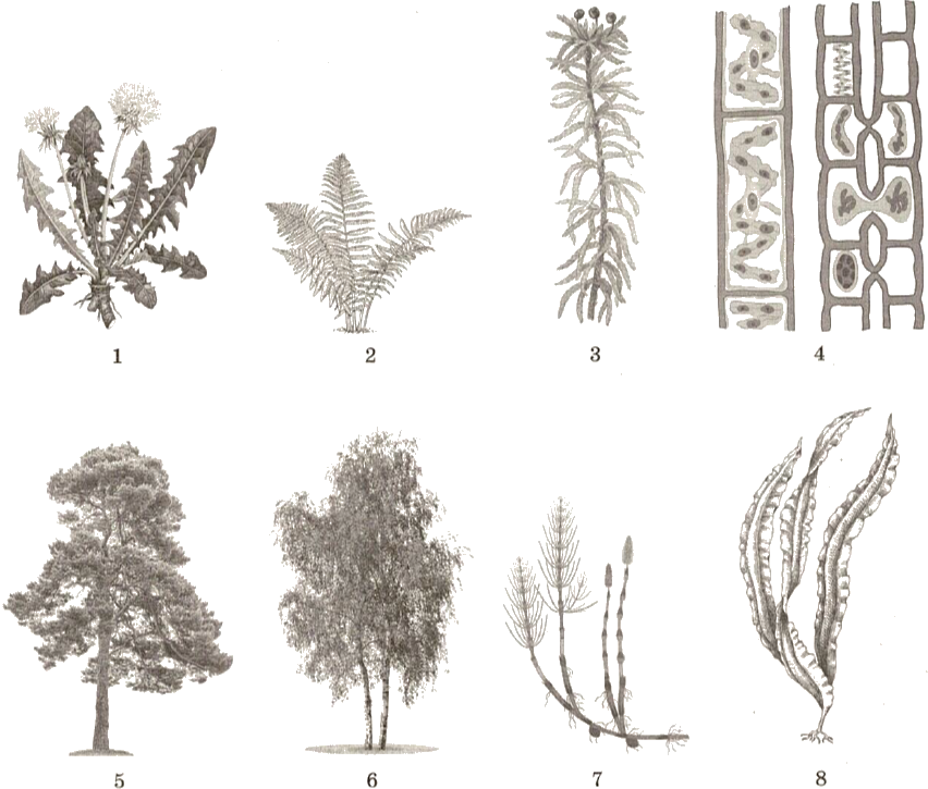 Какой цифрой на рисунке обозначено растение, у которого листья преобразованы в иголки?