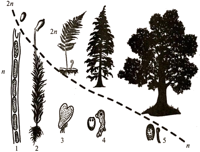 Каким номером на рисунках обозначен гаметофит моховидных?