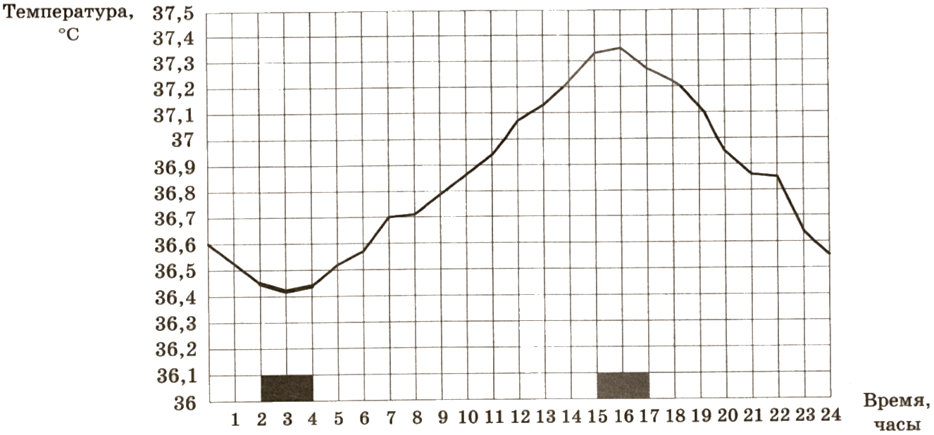 2) Минимальные температуры тела человека наблюдаются с двух до четырех часов ночи, что обусловлено замедлением деятельности органов и систем и активизацией катаболических процессов.