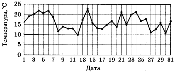 1) В течение месяца наблюдалось три одинаковых минимальных значения температур. 2) Температура стала резко понижаться с 4 мая. 3) На протяжении четырех дней подряд были самые низкие температуры. 4) Близкая к максимальной температуре месяца была температура 4 и 6 мая. 5) Максимальная температура была 14 мая.