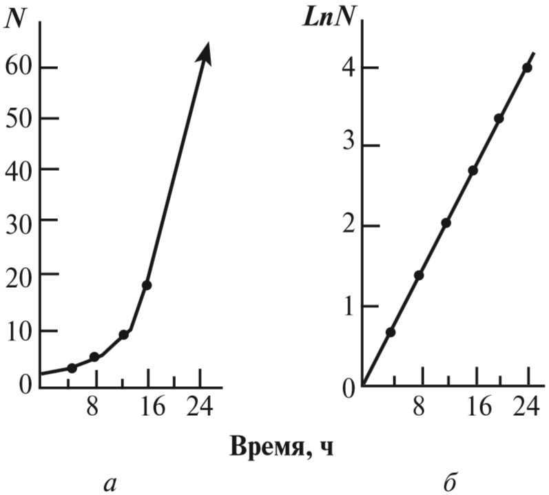 - Если численность популяции отложить в логарифмическом масштабе, то кривая приобретает вид прямой линии.