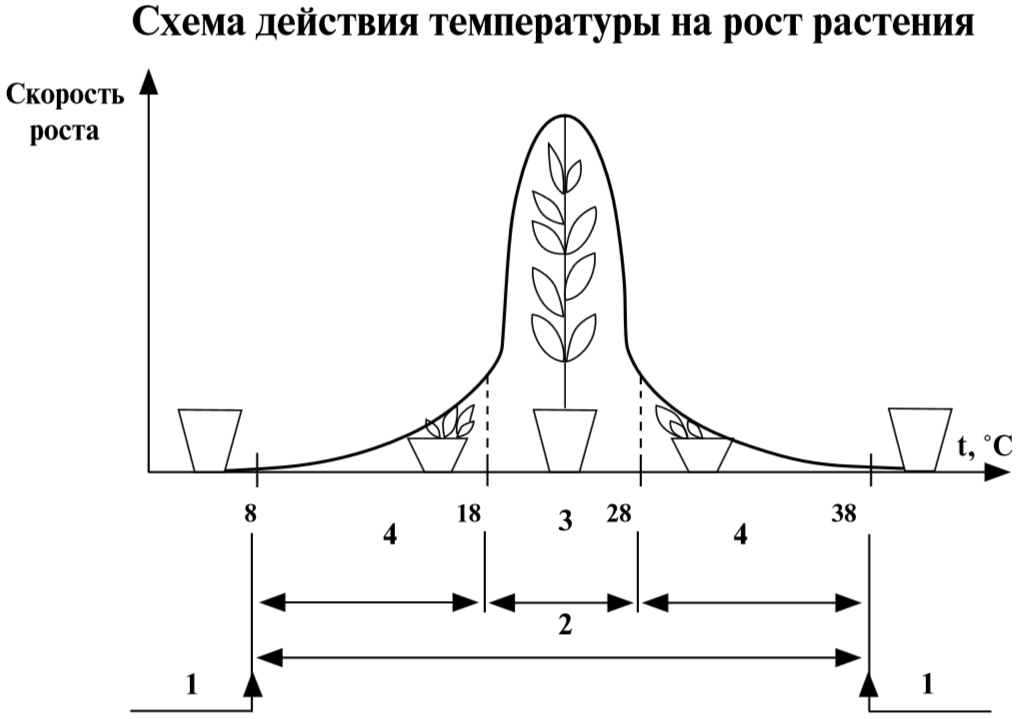 - Угнетение роста растения происходит при температуре ниже 18 °С и выше 28 °С.