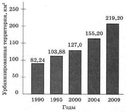 - С 2004 по 2009 г. скорость роста урбанизированной площади увеличилась.