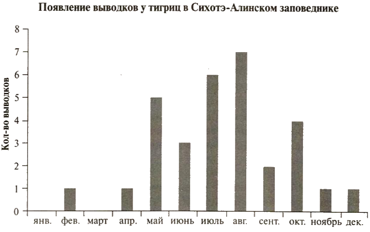 Проанализируйте диаграмму «Появление выводков у тигриц в Сихотэ-Алинском заповеднике».