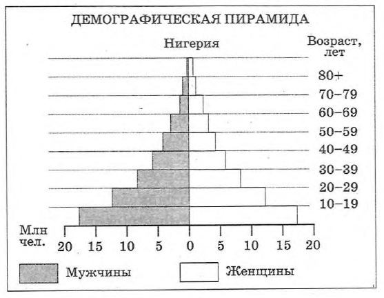 Проанализируйте пирамиду численности «Демографическая пирамида численности населения Нигерии (женщины и мужчины)».