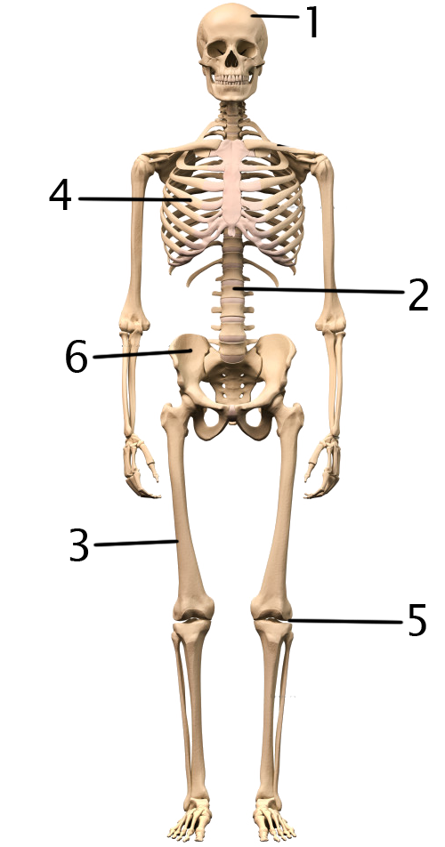 Какой цифрой на рисунке обозначена часть скелета человека, которая защищает внутренние органы?