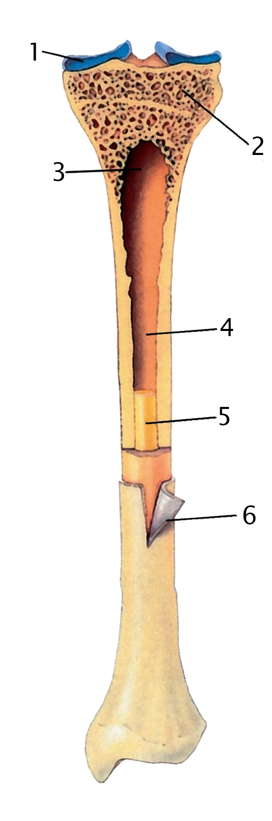 Какой цифрой на рисунке обозначена полость трубчатой кости?