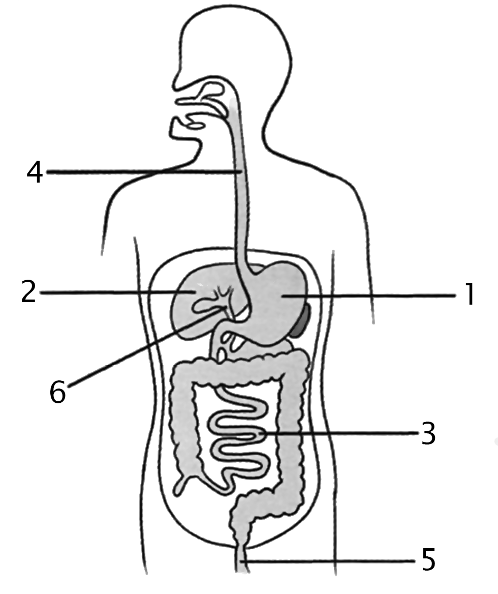 Какой цифрой на рисунке обозначена часть пищеварительной системы, где скапливается желчь?