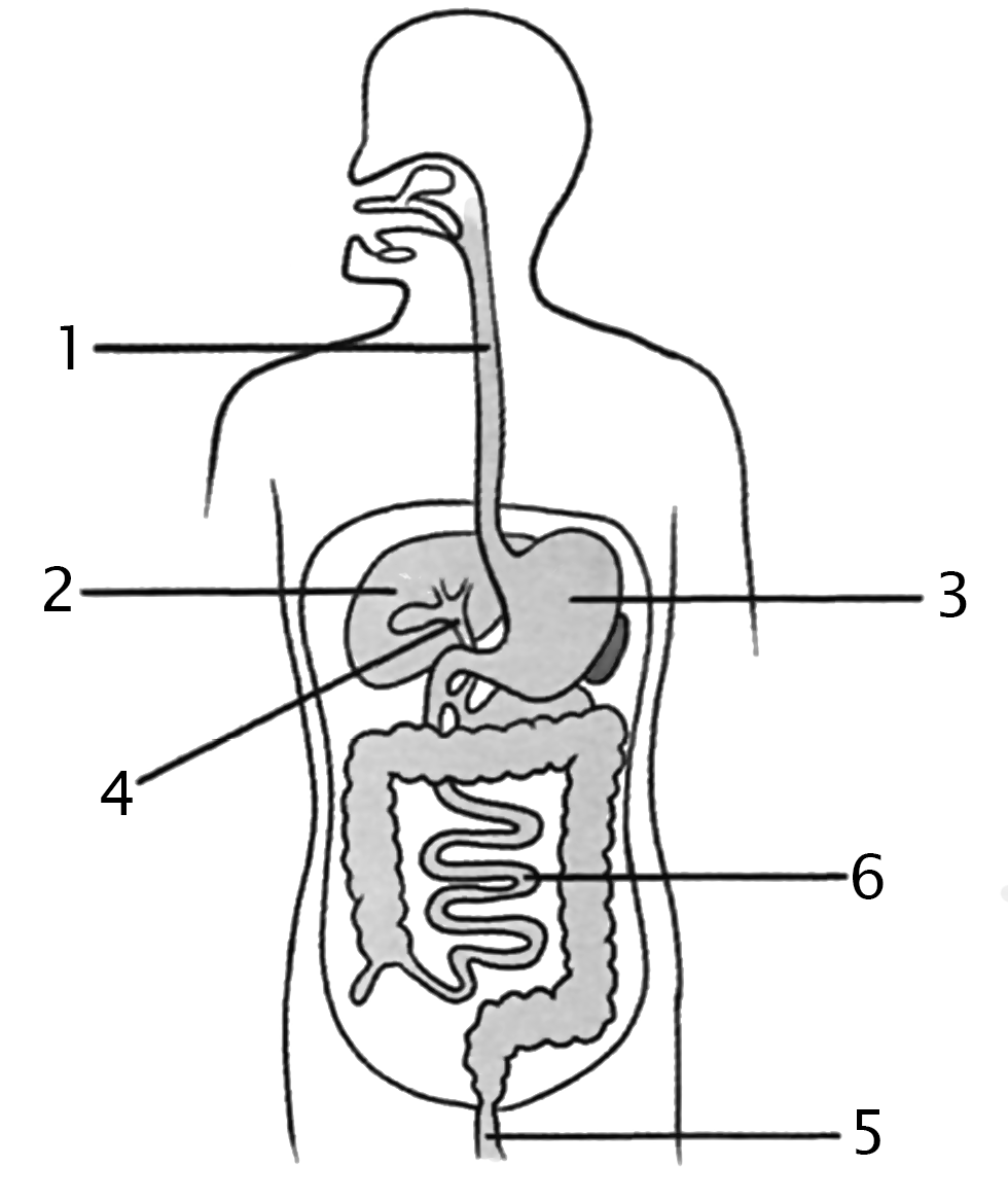 Какой цифрой на рисунке обозначена часть пищеварительной системы, где происходит окончательное расщепление веществ?