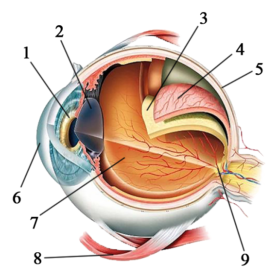 Каким номером на рисунке обозначено слепое пятно?