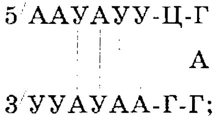 Комплементарные цепи ДНК антипараллельны (5’ концу в одной цепи соответствует 3’ конец другой цепи), синтез нуклеиновых кислот начинается с 5’, рибосома движется по иРНК от 5’ к 3’ концу. Все виды РНК синтезируются на ДНК-матрице. В цепи РНК и ДНК могут присутствовать комплементарные участки — палиндромы, благодаря которым у молекулы может формироваться вторичная структура. Фрагмент молекулы ДНК, на которой синтезируется участок центральной петли тРНК, имеет следующую последовательность нуклеотидов (нижняя цепь — матричная):
