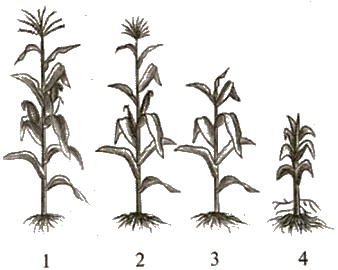 Ученые провели эксперимент по изучению влияния содержания в почве свинца на рост и развитие растений. Свинец вносили в почву в разных дозах: 100, 1000 и 10000 мг/кг. На рисунках 1-4 показано, как выглядели растения кукурузы в разных вариантах опыта: вариант 1 (контроль) — незагрязненная почва, вариант 2 — свинец вносили в количестве 100 мг/кг, вариант 3 — 1000 мг/кг, вариант 4 — 10000 мг/кг.