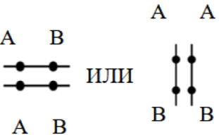 Допускается генетическая символика изображения сцепленных генов в виде: