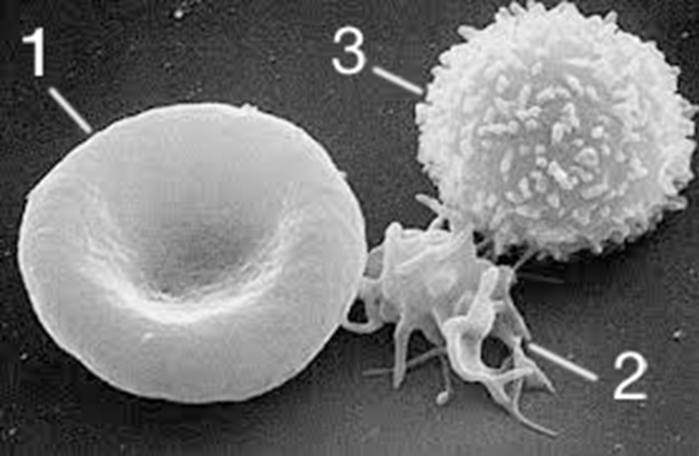 Установите соответствие между характеристиками и клетками крови, обозначенными на рисунке выше цифрами 1, 2, 3: к каждой позиции из первого столбца подберите соответствующую позицию из второго столбца.