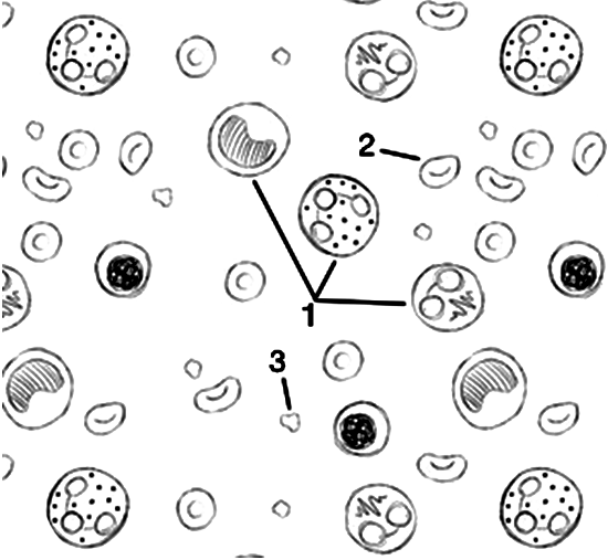 Установите соответствие между характеристиками и клетками крови, обозначенными на рисунке выше цифрами 1, 2, 3: к каждой позиции из первого столбца подберите