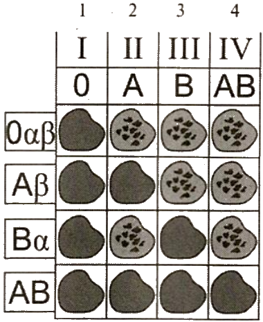 Установите соответствие между характеристиками и группами крови человека, обозначенными на рисунках цифрами 1, 2, 3, 4. К каждой позиции, данной в первом столбце, подберите соответствующую позицию из второго столбца.