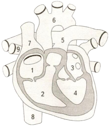 Установите соответствие между характеристиками и камерами сердца, обозначенными на рисунке цифрами 1, 2, 3: к каждой позиции, данной в первом столбце, подберите соответствующую позицию из второго столбца.