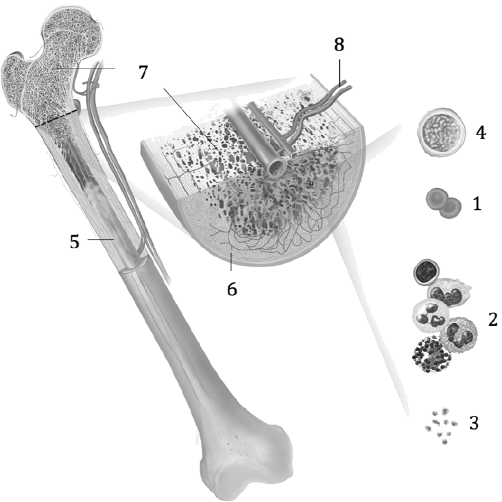 Установите соответствие между характеристиками и клетками человека, обозначенными на рисунке цифрами 1, 2, 3: к каждой позиции, данной в первом столбце, подберите соответствующую позицию из второго столбца.