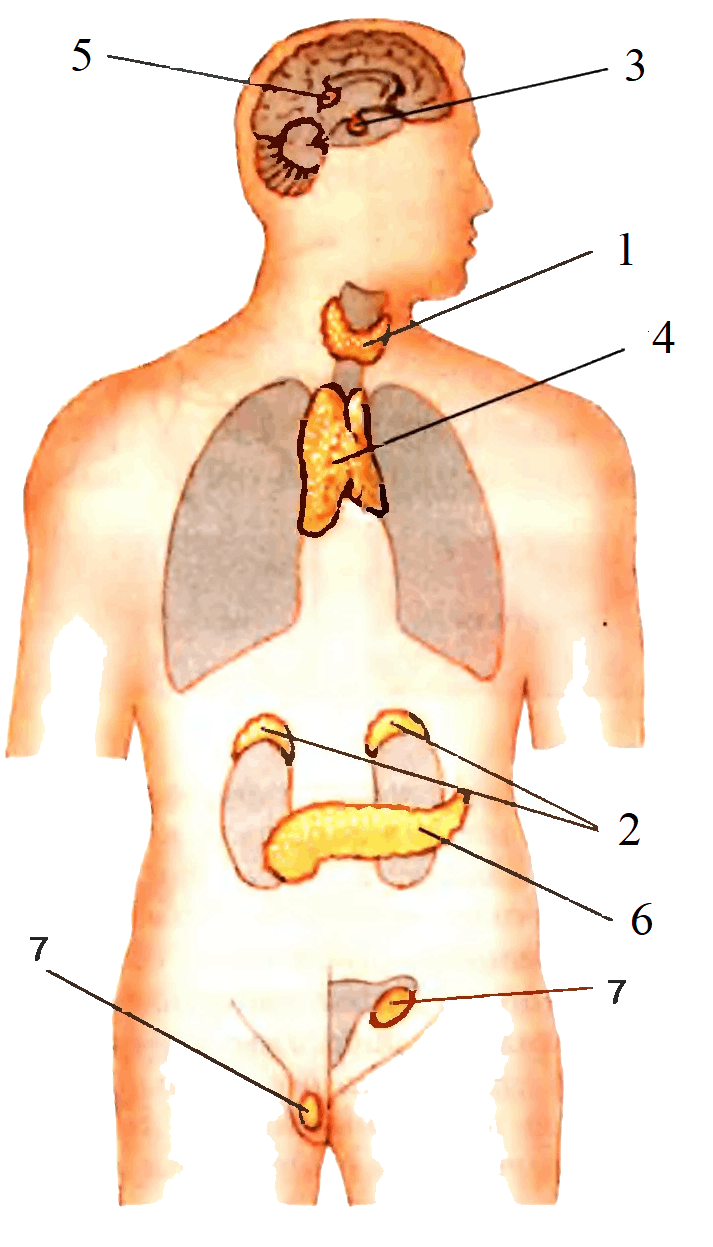 Установите соответствие между характеристиками и железами человека, обозначенными на рисунке цифрами 1, 2, 3: к каждой позиции, данной в первом столбце, подберите соответствующую позицию из второго столбца.