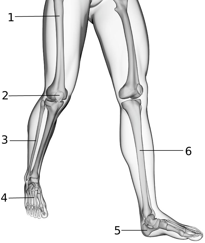 Выберите три верно обозначенные подписи к рисунку, на котором изображено строение нижней конечности.