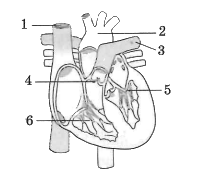 Выберите три верно обозначенные подписи к рисунку, на котором изображено внутреннее строение сердца.