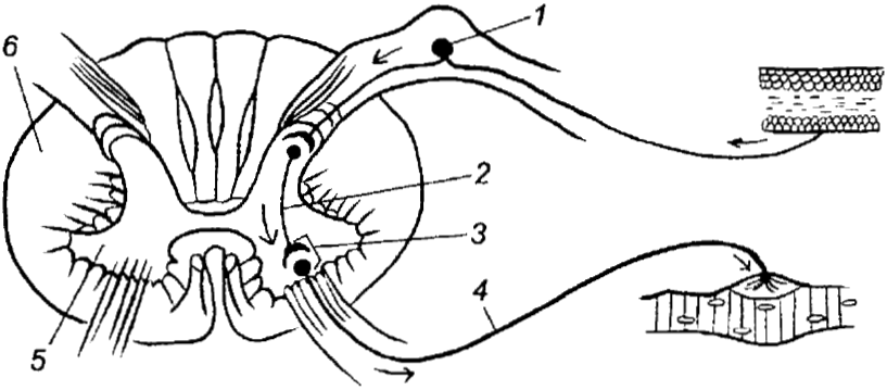 Выберите три верно обозначенные подписи к рисунку, на котором изображена рефлекторная дуга.