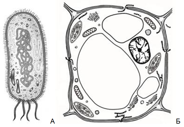 - Под буквой Б изображена растительная клетка (царство Растения).